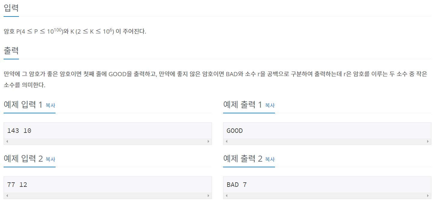 백준 1837번 : 암호 제작 문제를 풀이해봅시다.